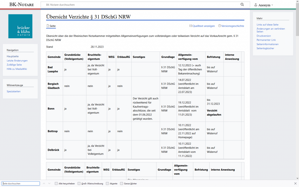 Am 13.11.2023 hat die Landeshauptstadt Düsseldorf per Allgemeinverfügung partiell auf das Vorkaufsrecht gem. § 31 DSchG NRW verzichtet.